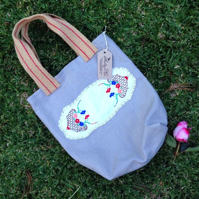 #1 Ambling Home. A beautiful vintage rose coloured rug or throw caught my eye today. When I picked it up, it said “This rug has been hand knitted from left over pieces of wool, it is a unique design”. Ambling Home’s craft are all unique designs made using recycled vintage fabric, bed linen, souvenir tea towels, buttons, handles, zippers, cushion inserts and coffee bean bags. Products made with a conscience and ensuring there is less landfill. How could I not purchase this beautiful rug, and by the way this little bag too? The bag has been made from reclaimed linen, vintage recycled bed sheet and vintage doily. The handles are made from upholstery jute. I love Ambling Home’s motto too: Taking the time to mosey along…It demonstrates that each item is made with a lot of patience, love and care. It was great to meet the mother and daughter team, Amanda and Emma today. Looks like they do sewing classes too, which I would love to try next, making all things vintage.