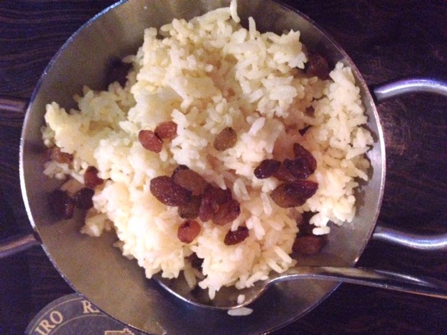 And as a base, try the Sri Lankan Kaha Rice. It’s a traditional style tempered yellow rice sprinkled with sultanas (Regular 5.75(2p) Large) 7.75(4p)