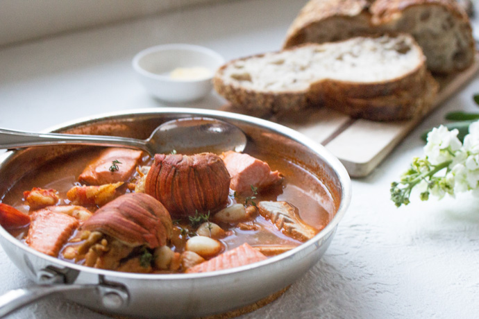 You will need time if you want to make a good seafood bouillabaisse – time to go to the Sydney Fish Markets in the morning to select fresh fish, shellfish, crustaceans; time to shop at your local grocer to pick up vegetables and spices and time to get a really good, fresh loaf of artisan bread. And it will be worth it as this recipe worked for me, it’s labour intensive but it worked and I got a “it’s pretty good” thumbs up from my husband. Creating my own seafood bouillabaisse dish is one of the most rewarding things I’ve made.