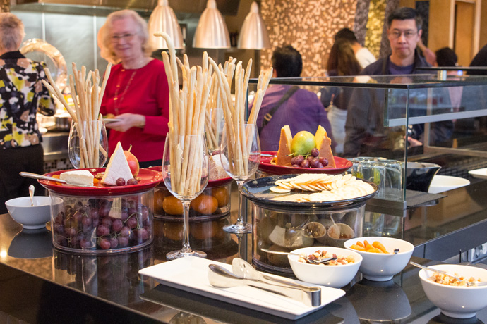 The hot buffet has a good selection of beef and pork and the Mosaic chef can carve it up for you on request. They also can cook eggs anyway you like. So in addition to breakfast staples of bacon, sausages, baked beans, hash browns, you can also get assorted seafood of prawns, fish and mussels, flatbread with curried chickpeas, lamb with mashed polenta. From the cold buffet, you can get smoked salmon with various condiments as well as octopus and various salads. There is also endless supply of delicious fresh bread and cheese platters as well.