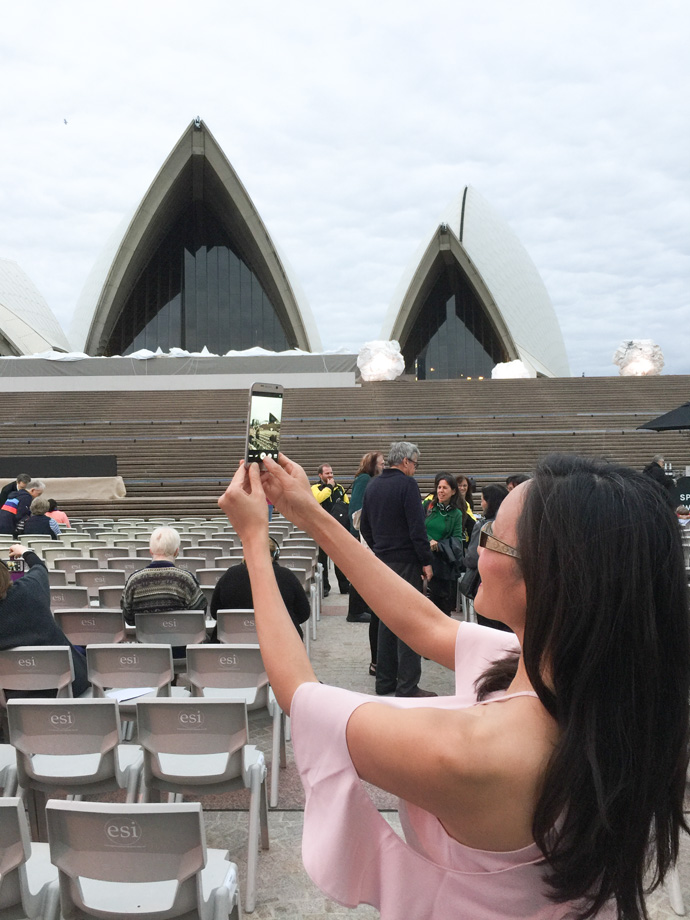 The 100-metre wide steps of the Sydney Opera House is transformed into an opera stage and it’s quite a son et lumière spectacle: the platforms will glide across the steps; giant screens unfurl displaying historic photos and there are giant glowing balls of paper, projections and lighting effects.